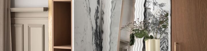Peilit ja taulut tuovat kotiin persoonallista ilmettä. Peilien avulla luot valoa ja tilan tuntua, kun taas taulut antavat huoneelle luonnetta ja ilmaisua. Yksinkertaisia yksityiskohtia, jotka kohottavat kokonaisuutta ja sitovat sisustuksen yhteen.