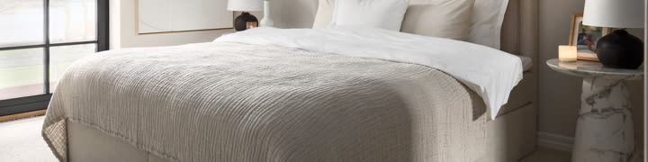 Sängynhelmat ja päiväpeitteet luovat makuuhuoneeseen viimeistellyn ja yhtenäisen ilmeen. Pehmeät materiaalit ja ajattomat sävyt auttavat luomaan rauhallisen ja kutsuvan tunnelman. Täydellisiä sängyn kehystämiseen, säilytystilan peittämiseen ja hotellimaisen ilmeen luomiseen.