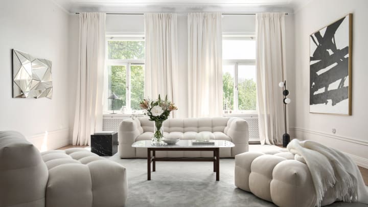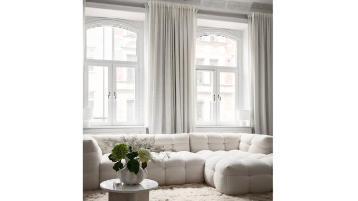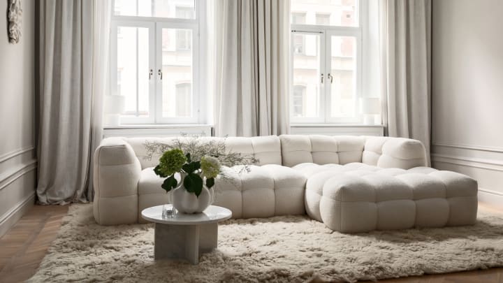 Billie Sohva 2 160 EUR // Snöblomma Joulutähti 46 EUR // Fluffy Flokati Matto 304 EUR // Oslo Joulutähti 79 EUR