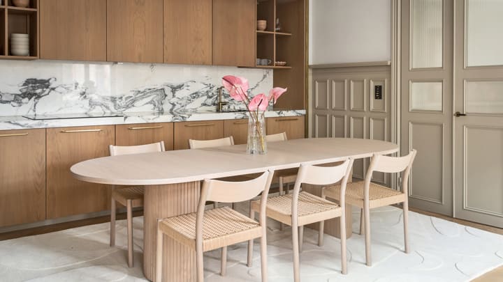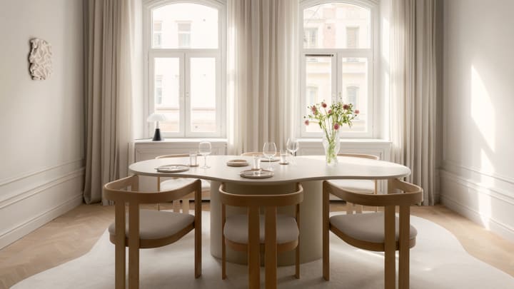 LAURA Ruokapöytä 1 116 € // CALLUM Ruokatuoli 215 €